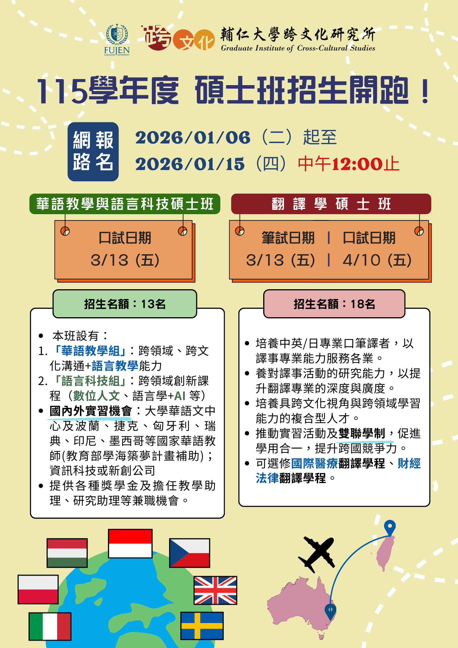 115學年度跨文化研究所碩士班 招生開跑!