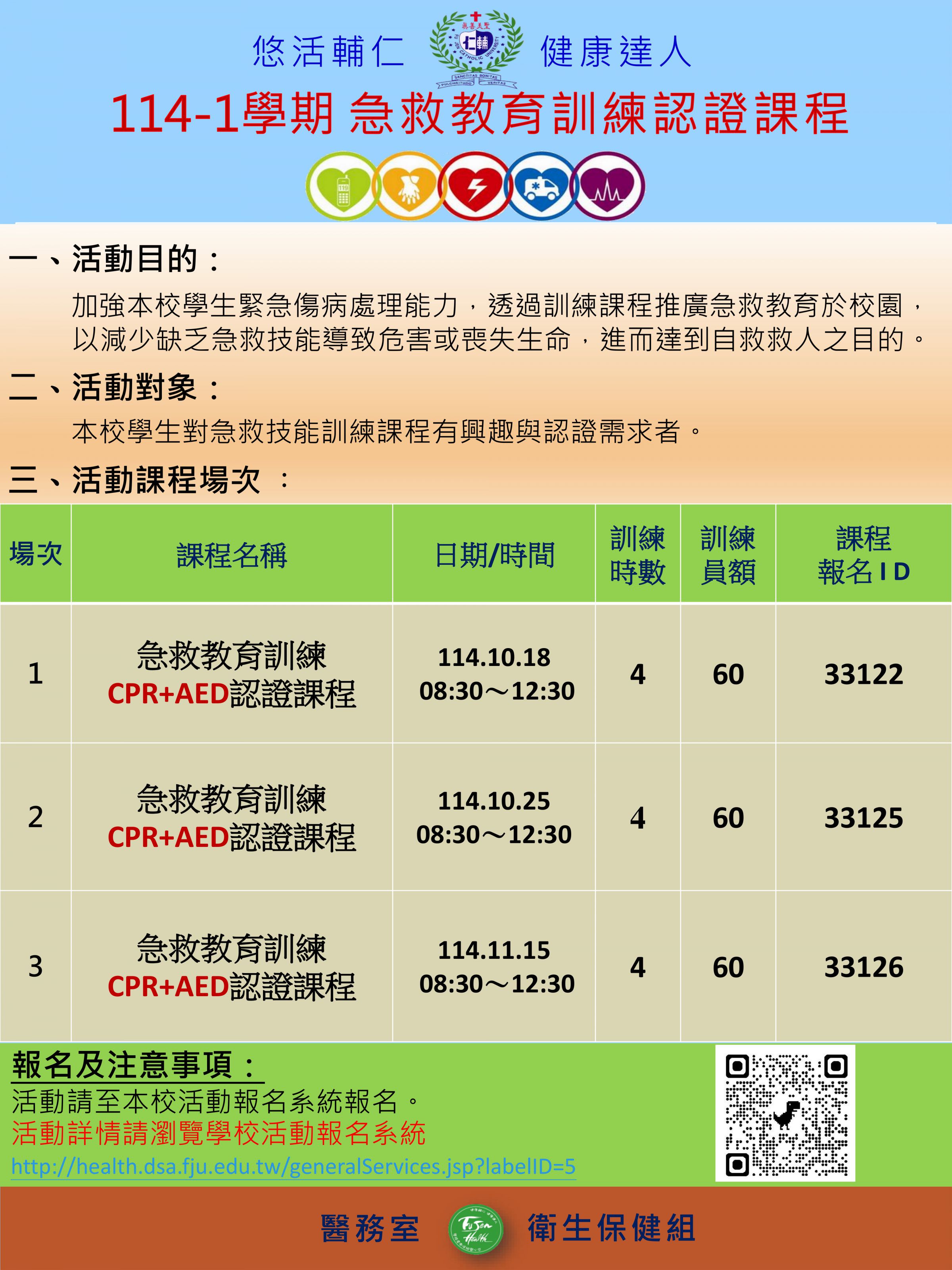 114年10月18日(六)-(CPR+AED) 08:30~12:30 (4小時) 活動ID-33122