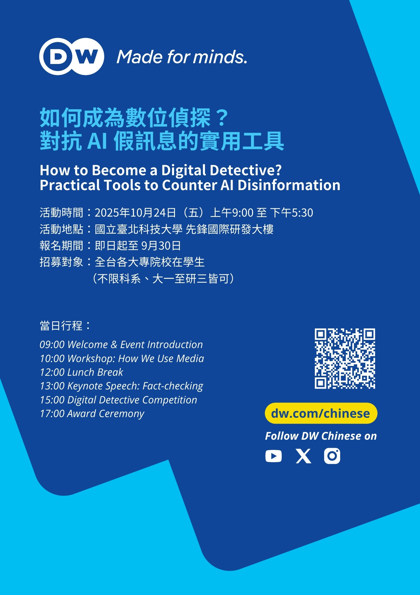 (註:部分活動時段以全英文進行,請衡量後再報名,DW保留修正、暫停、終止或解釋本活動之最終權利。)